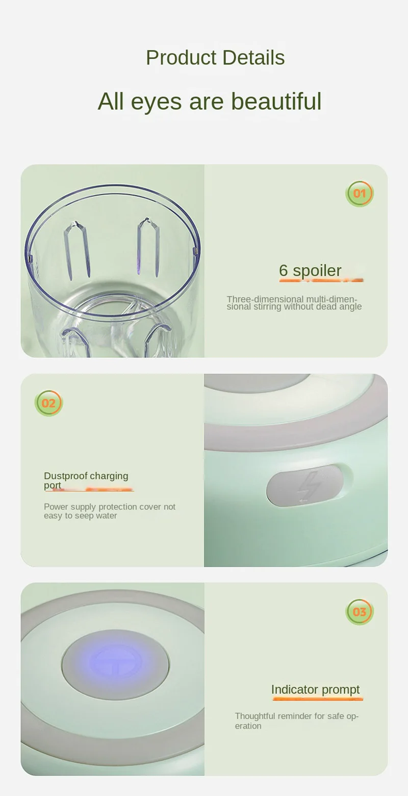 2. Safe: Magnet design, the motor automatically stops once the top cover is opened. The food-grade plastic cup can keep food safe