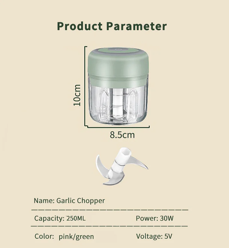 4. Quick Chop: The sharp blade of the garlic chopper can quickly chop garlic, spices, nuts, vegetables, meat, ice cubes, etc. It is very suitable for small foods