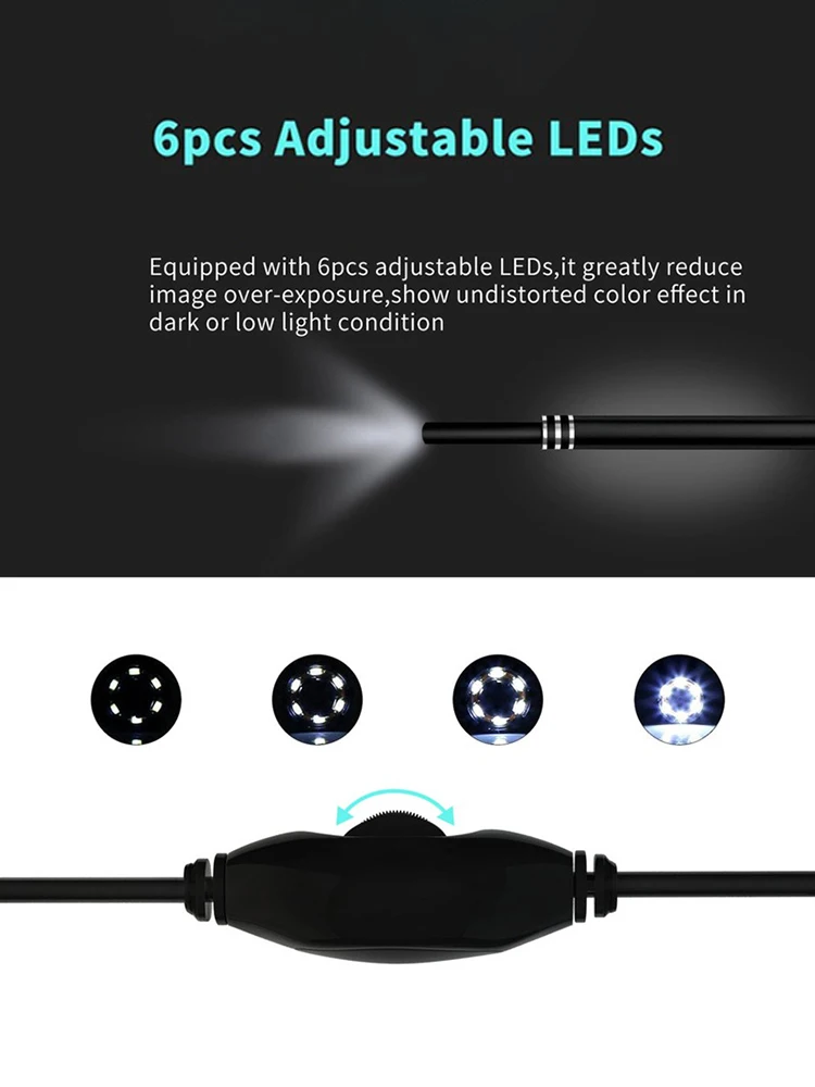 3.Six unique adjustable LED lights, combined with a 5.5mm HD camera, greatly help improve image brightness and clarity in dark environments.
